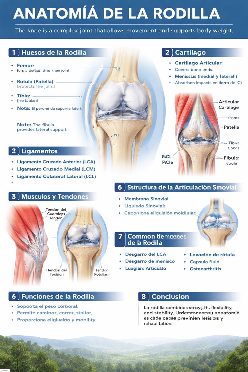 - Conocer la estructura y función de la rodilla ayuda a identificar y prevenir lesiones comunes, como desgarros de ligamentos o meniscos.