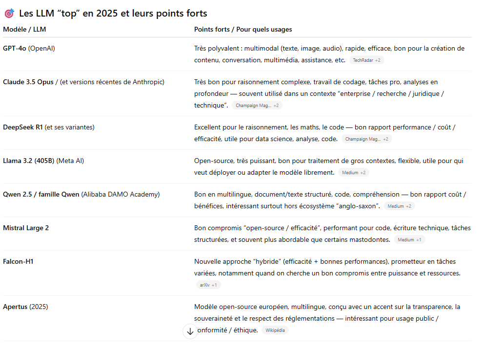 Les meilleurs LLM en 2025