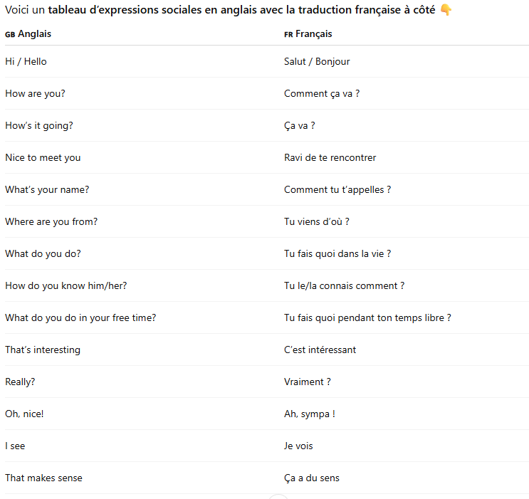 - Faciliter les interactions sociales : Comprendre et utiliser ces expressions vous permettra de vous intégrer plus facilement dans des environnements anglophones, que ce soit pour des voyages, des études ou des affaires.